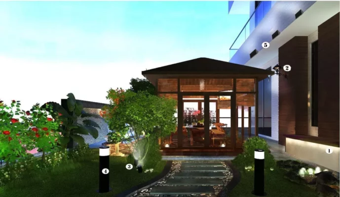 5. كشافات خارجية : لإنارة المساحة المرتفعة من الحائط